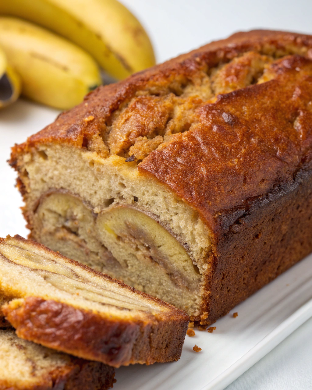Coupez ce banana bread en tranches épaisses et posez-les simplement sur une assiette aux tons naturels, bois ou céramique brute. Il s’accompagne avec douceur d’un thé noir légèrement fumé ou d’un café au lait, selon votre humeur. Si le moment est un peu frais, un nuage de ricotta ou un filet de miel apporte une touche réconfortante, presque comme un souvenir d’enfance. Le contraste entre la croûte dorée et la mie moelleuse invite à la lente dégustation, pour profiter de chaque petite bouchée.