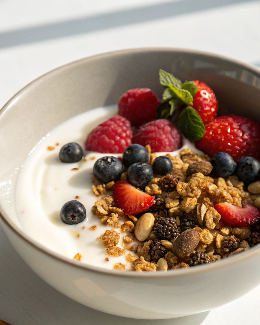 Ce bol de yaourt et granola maison, simple et naturel, raconte une histoire de patience et de douceur à chaque cuillerée.