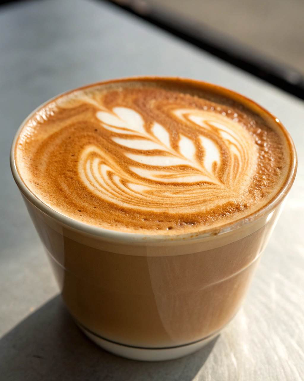 Servez ce café latte dans des tasses larges et épaisses, pour apprécier la rondeur du breuvage. La mousse blanche contraste joliment avec le brun profond du café, apportant une touche douce et visuelle à chaque gorgée. Accompagnez-le d’une petite biscotte beurrée, d’un carré de chocolat noir ou d’une tranche de pain aux noix pour une pause simple et sincère, où la chaleur du lait enveloppe doucement la douceur du café. Cet instant appelle à ralentir, à se poser près d’une fenêtre un matin calme.