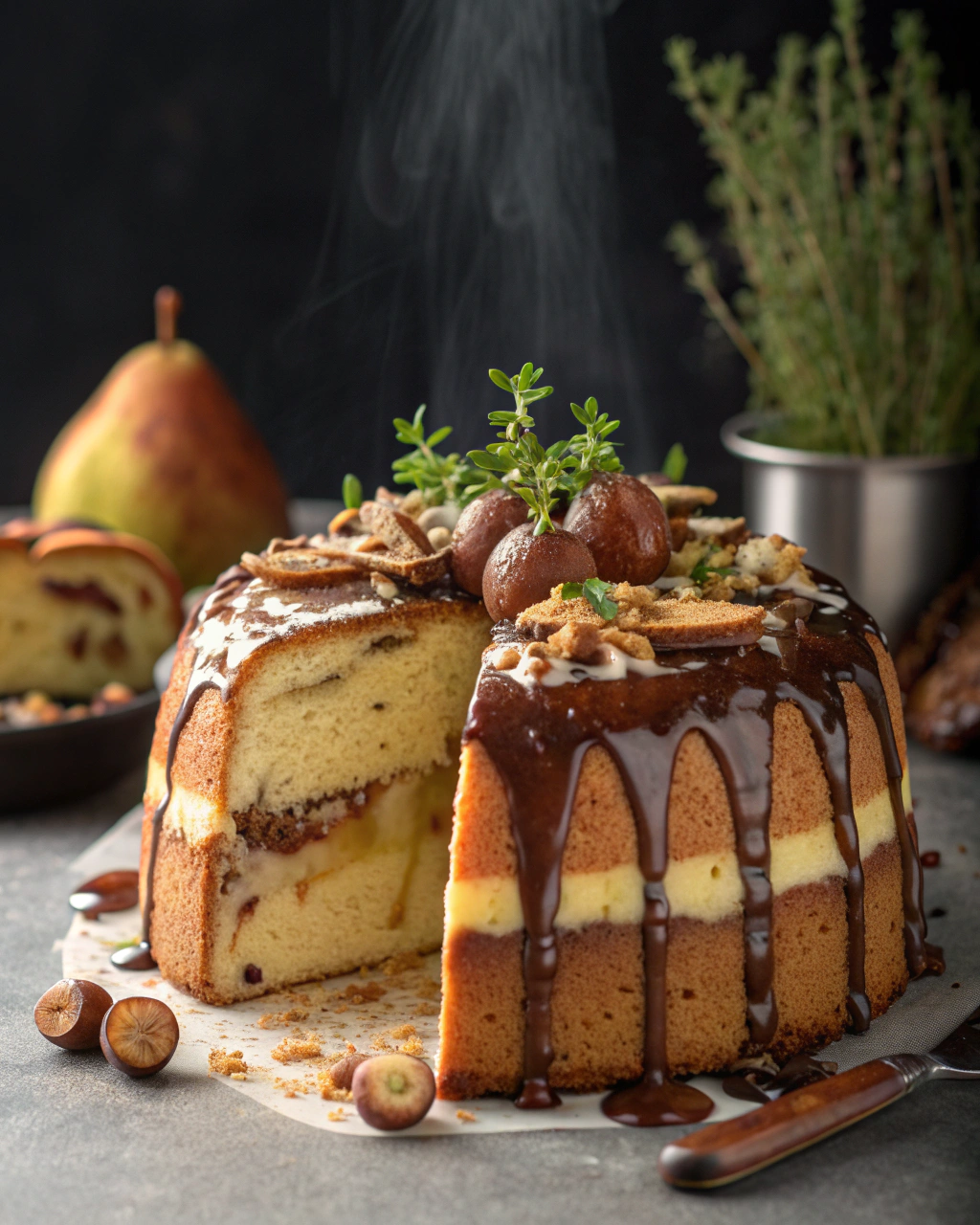 Je me souviens encore de ce doux après-midi où, dans ma cuisine un peu encombrée, le parfum de la poire mûre a commencé à doucement se mêler à celui du chocolat noir fondant. La chaleur du four réchauffait la pièce, et le cake qui levait lentement rendait l’air presque feutré, comme si le temps voulait ralentir. Ce qui m’a marqué, c’est ce léger craquement à la sortie du four, quand les noisettes grillées parfument intimement la pâte, apportant une texture croquante et chaleureuse au gâteau moelleux. Cette alliance simple mais fouillée entre le fruit sucré, le chocolat intense et la noisette croquante, c’est un peu comme un câlin pour l’âme, qui murmure de prendre le temps, de sentir, de savourer chaque bouchée.