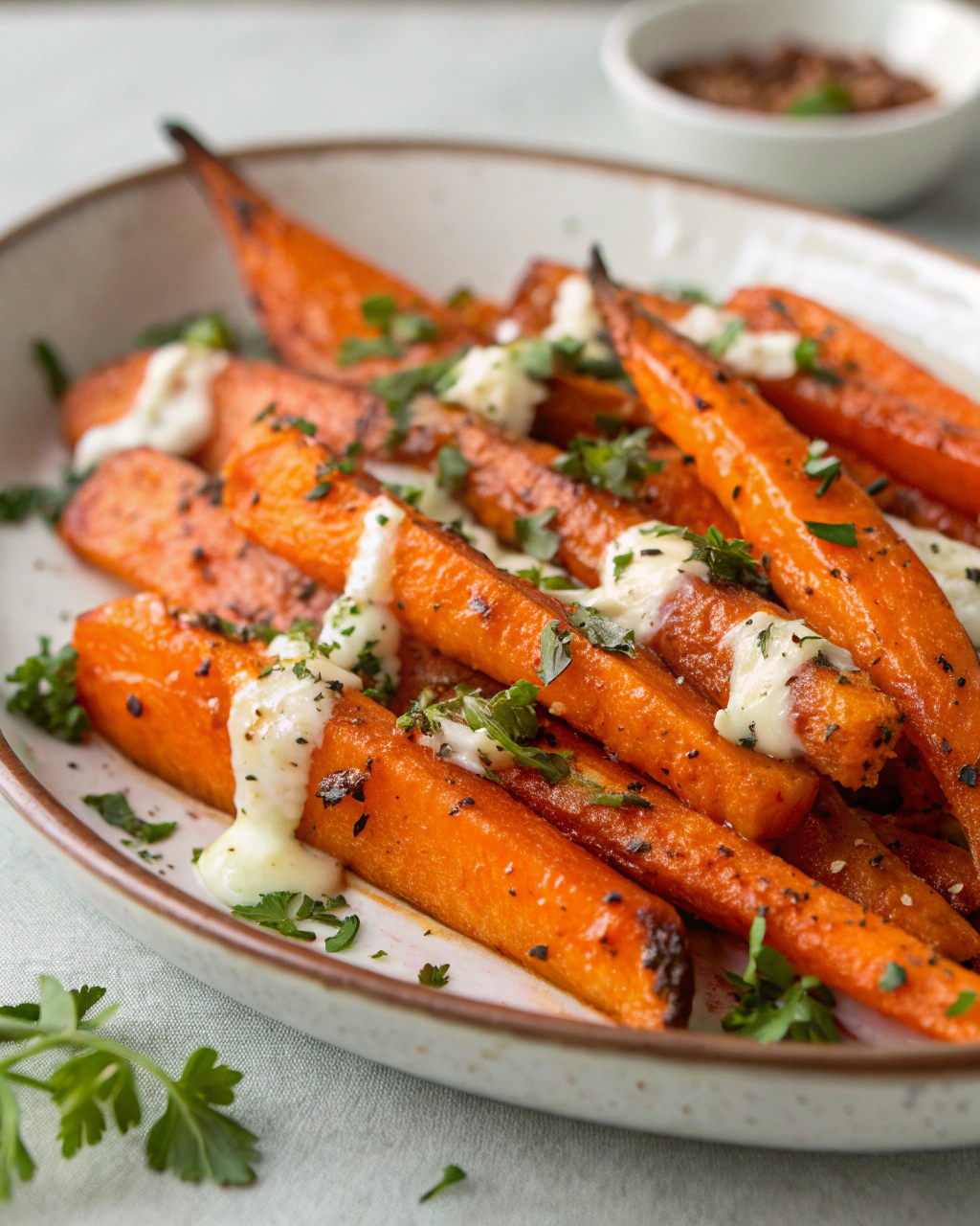 Servez ces carottes rôties dans un plat rustique, leur teinte orangée illuminant simplement la table. Elles accompagneront délicatement un poisson grillé, une viande blanche ou même un plat végétarien riche en céréales. Ajoutez quelques feuilles fraîches de coriandre ou de persil pour une touche de vert qui réveille l’ensemble, et pourquoi pas un filet de yaourt nature ou un peu de tahini pour composer une assiette pleine de douceur et de peps.