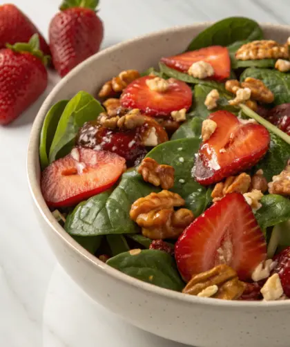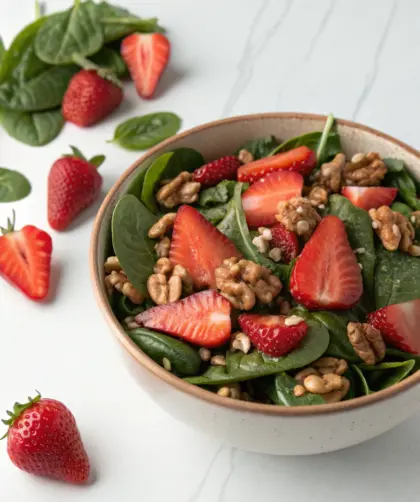 Salade épinards–fraises–noix (facile) — Introduction Je me souviens parfaitement de ce moment où j’ai préparé pour la première fois cette salade, pendant un après-midi doux …