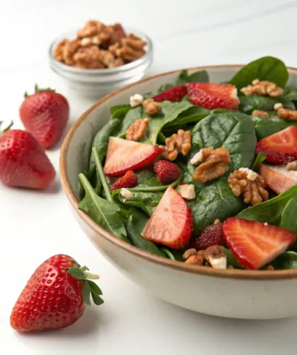 Salade épinards–fraises–noix (dîner sain) — Introduction Il y a quelque chose d’apaisant à préparer cette salade un soir de printemps, quand la lumière décline doucement …