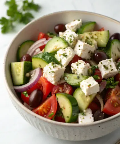 Salade grecque légère (plein de saveurs) — Introduction Je me souviens d’un après-midi ensoleillé, assis à une petite table en terrasse, avec le parfum frais …