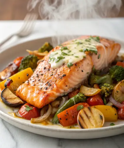 Saumon au four + légumes rôtis (textures croquantes) — Introduction Je me souviens de ce soir où, alors que la fin d’après-midi s’étirait doucement, j’ai …