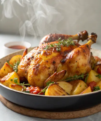 Poulet rôti et pommes de terre comme chez mamie — Introduction Je revois encore cette odeur douce et rassurante qui s’échappait du four un dimanche …