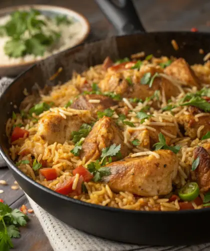Riz au poulet savoureux simple et délicieux — Introduction Je me souviens encore du doux crépitement de la poêle quand j’ai fait revenir les morceaux …
