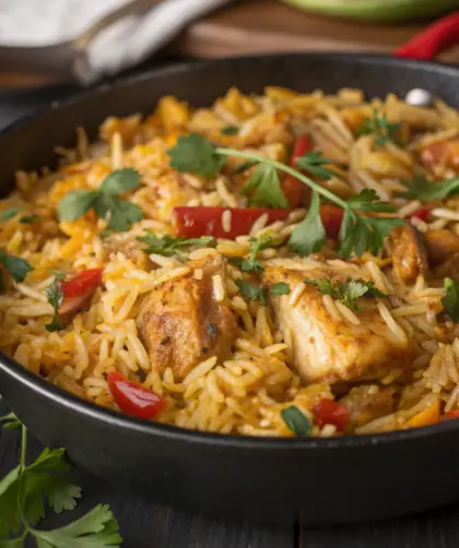 Riz au poulet savoureux simple et délicieux — Introduction Je me souviens encore de ce moment, quand la cuisine s’est doucement emplie du parfum chaud …