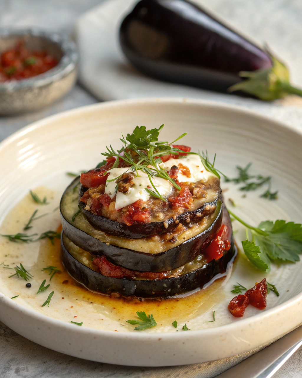 Le souvenir qui me revient à chaque fois que je prépare ce caviar d’aubergine, c’est cette douce odeur de fumée mêlée aux épices qui envahissait la maison de mamie. Elle faisait rôtir ses aubergines doucement sur une flamme, laissant la peau noircir et craqueler. Puis, une fois la chair libérée, elle la mélangeait à de l’ail frais, un filet d’huile d’olive, parfois un peu de jus de citron, donnant un mélange à la fois tendre et parfumé. J’entends encore le léger grésillement de la peau au contact du feu et le parfum rond, presque sucré, qui s’échappait du four d’été. La texture, ni tout à fait lisse ni trop granuleuse, caressait le palais avec une simplicité réconfortante, presque comme un vieux pull qu’on enfile sans y penser. Cuisiner ce plat aujourd’hui ramène cette chaleur, ce silence doux de cuisine familiale.