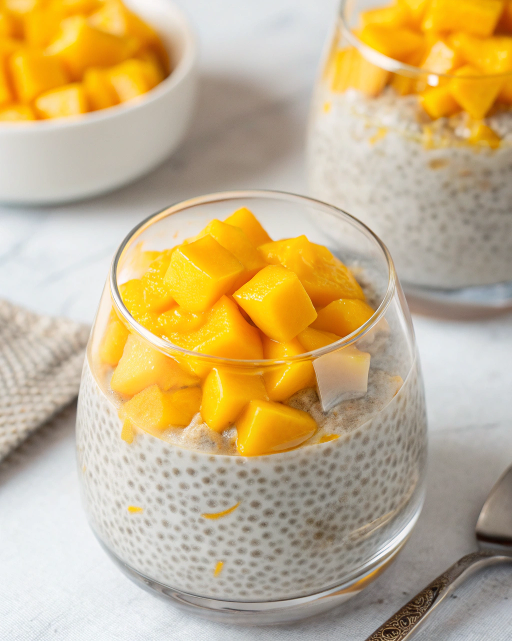 Je me souviens de ces matins d’été, quand la chaleur douce caresse les volets ouverts et que l’air emplit la cuisine d’un parfum fruité et légèrement sucré. Ce chia pudding à la noix de coco et mangue m’a toujours rappelé ces instants suspendus, où le frais rencontre la gourmandise sans détour. Le petit froissement des graines de chia qui gonflent dans le lait de coco crée une texture à la fois délicate et bien présente, comme une promesse de douceur. Ouvrir une mangue mûre à point, sentir ce parfum sucré, un peu acidulé, c’est presque comme retrouver un bout de soleil. Ce dessert, ou plutôt ce petit déjeuner léger, se prépare en un rien de temps, sans four, juste en laissant le temps faire son œuvre dans le frais du réfrigérateur. C’est une recette simple qui parle de patience et de fraîcheur, avec une texture soyeuse et un goût qui invite à la détente.
