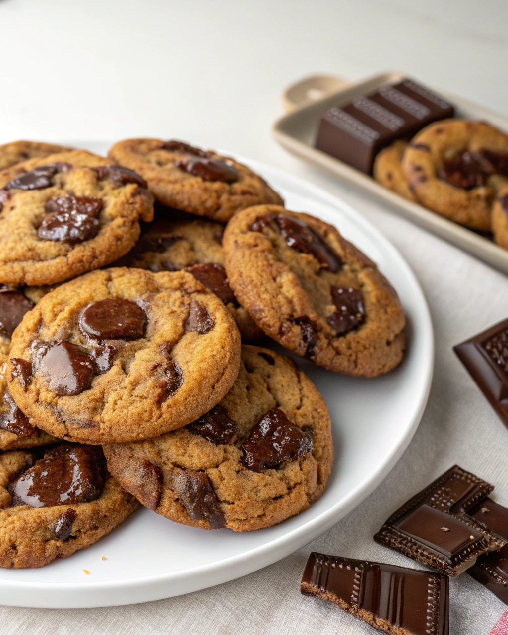 Servez ces cookies sur une belle assiette, entourés de petits ramequins de fruits rouges ou d’une compote maison pour un contraste fruité. Leur couleur riche, presque terreuse avec leurs éclats de chocolat noir, invite à une pause calme, accompagnée d’un thé fumant ou d’un café léger. Poser un linge en coton froissé au coin de la table et laisser le temps suspendu à ces douceurs simples, voilà une idée qui, pour moi, sublime le partage.