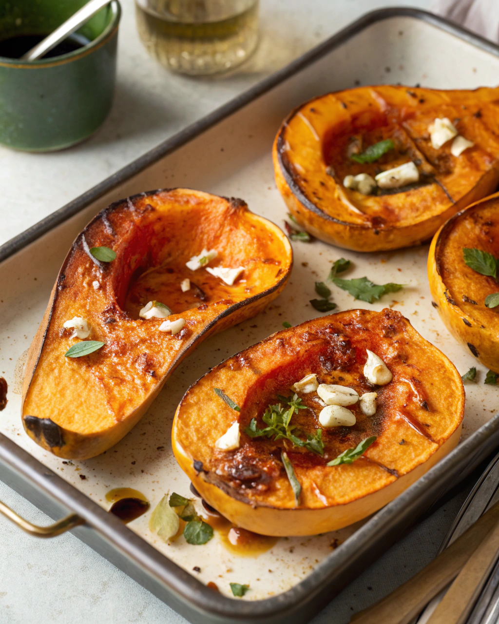 Servez cette courge rôtie chaude, directement sur une assiette claire qui illumine ses teintes profondes. Elle s’épanouit parfaitement à côté d’une salade de roquette ou d’épinards frais, agrémentée de quelques pignons grillés. Un filet d’huile d’olive ou une cuillère de yaourt nature apporte un contraste doux et frais. Ce plat simple est un petit coin de douceur à savourer en fin de journée, où toutes les saveurs s’équilibrent calmement.