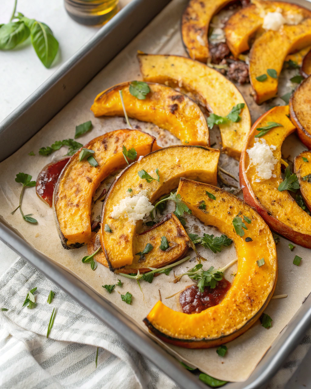Servez la courge rôtie dans un plat clair pour faire ressortir ses teintes chaudes, de doux orangés dorés. Une simple cuillère de yaourt nature ou une pointe de fromage frais aux herbes apporte une fraîcheur qui équilibre bien le côté légèrement sucré et fondant. Cette préparation s’accorde merveilleusement avec une salade verte croquante ou des lentilles pour une assiette végétarienne nourrissante et colorée, tout en simplicité.