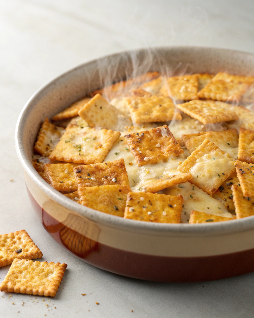 Je me souviens encore de ce petit moment suspendu lorsque j’ai glissé la plaque dans le four, et aussitôt la cuisine s’est embaumée d’une douce odeur de fromage légèrement toasté, mêlée à ce parfum chaleureux de pâte dorée. Ce qui m’a charmé avec cette recette, c’est la simplicité de la préparation, et ce craquant subtil sous la dent, qui accompagne à merveille un verre de vin ou une soupe maison. J’aime le fait que les crackers ne soient ni trop secs, ni trop durs, avec ce goût de parmesan qui titille juste ce qu’il faut le palais. Quand ils sortent du four, encore tièdes, le léger craquement lorsqu’on les attrape annonce tout leur caractère : un mélange de croustillant et de fondant, l’intimité d’un goûter improvisé, calme et réconfortant. Ces crackers ont accompagné mes petites pauses, entre deux pages de livre, avec cette simplicité qui parle d’instant partagé.