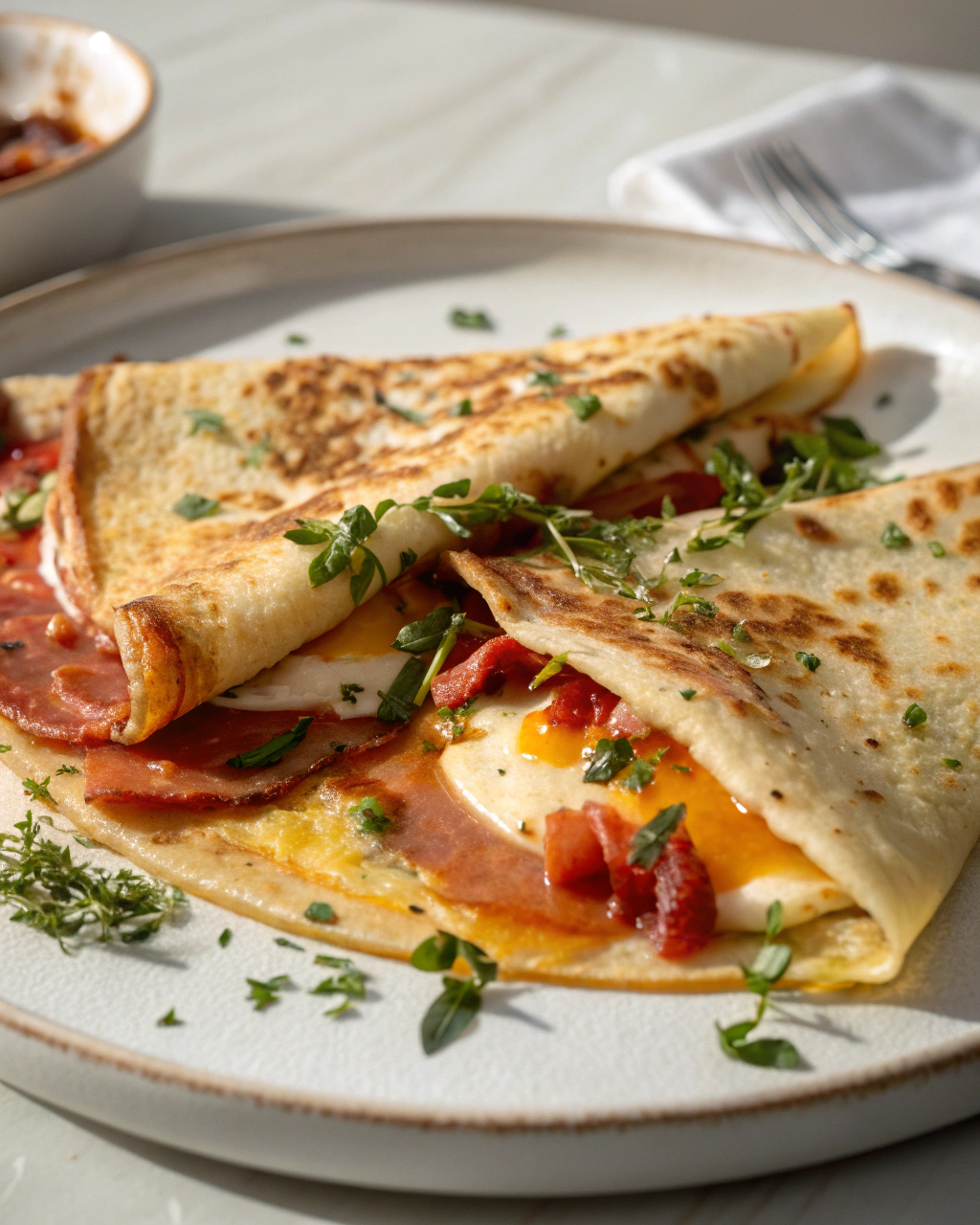 - Retournez délicatement la crêpe à l’aide d’une spatule et laissez cuire encore 30 secondes à 1 minute selon la coloration désirée.