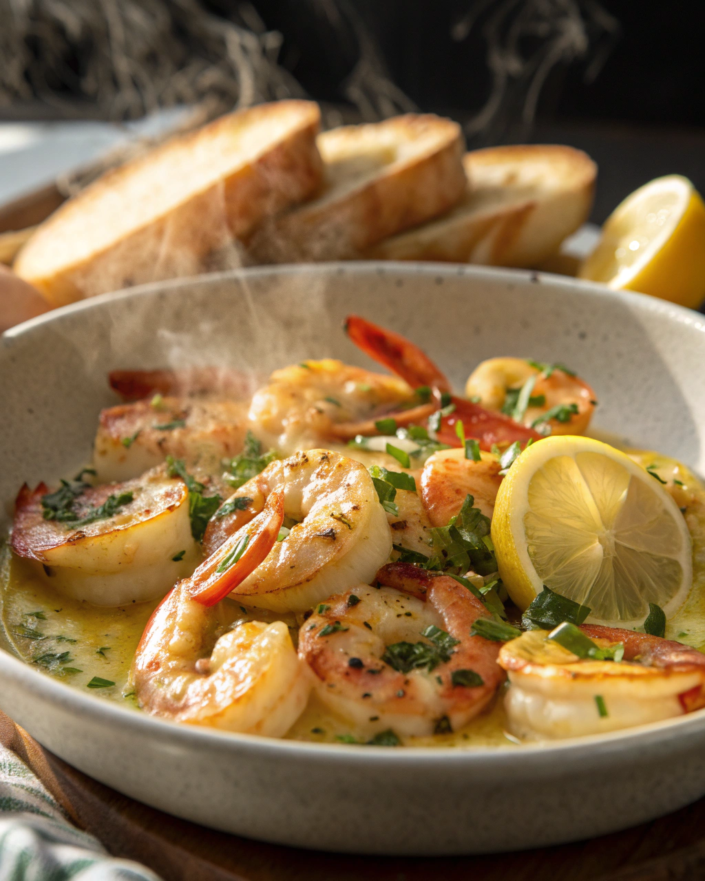 Ce mélange simple d’ail et de citron autour de crevettes doucement sautées conserve cette alchimie qui réchauffe le quotidien sans complication.
