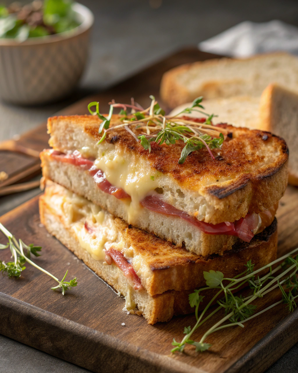 Je me revois cette soirée où l’envie d’un dîner simple mais réconfortant s’est emparée de moi. Alors que la pluie tambourinait doucement contre les fenêtres, j’ai sorti du pain de mie prêt à être transformé en croque-monsieur. Le bruit léger du beurre fondant dans la poêle et le crépitement discret du fromage à racler m’ont immédiatement rappelé pourquoi ce plat est si attachant. La croûte dorée, légèrement croustillante, contraste avec ce cœur moelleux, presque fondant, qui invite à mieux savourer chaque bouchée. À travers la cuisine embaumée d’une odeur douce de fromage et de pain grillé, la chaleur du four enveloppait tout, rendant l’atmosphère encore plus intime. C’est dans ce moment suspendu, entre la préparation et la dégustation, que le croque-monsieur a cette magie simple qui raconte une histoire familiale, tranquille, sans prétention.