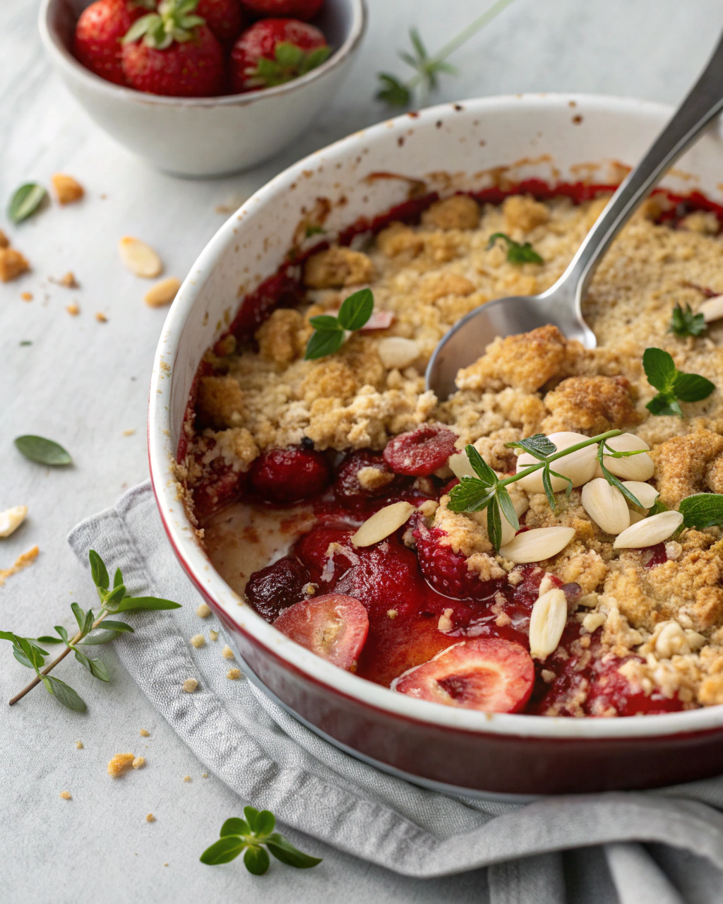 Crumble fraises et amandes : fondant, croustillant et irrésistible