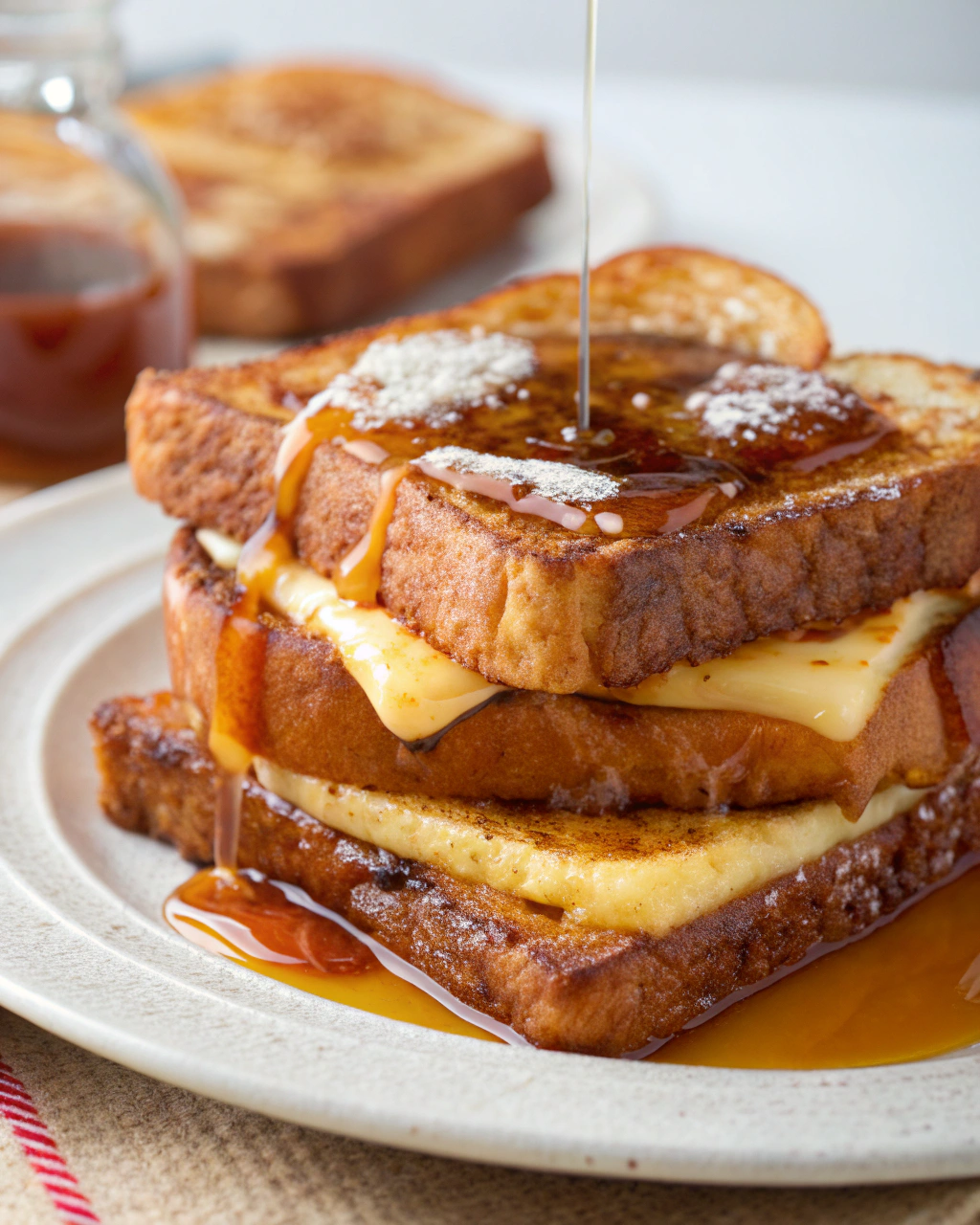Servez ces tranches dorées dans une assiette claire, pour faire ressortir leur couleur chaleureuse. Quelques fruits rouges, une pincée de sucre glace et un filet de miel ou de sirop d’érable les accompagnent parfaitement, apportant un contraste frais et sucré. Avec un thé léger ou un café doux, ce petit déjeuner se savoure à petites bouchées, dans la lumière calme du matin ou lors d’une pause douceur en après-midi.