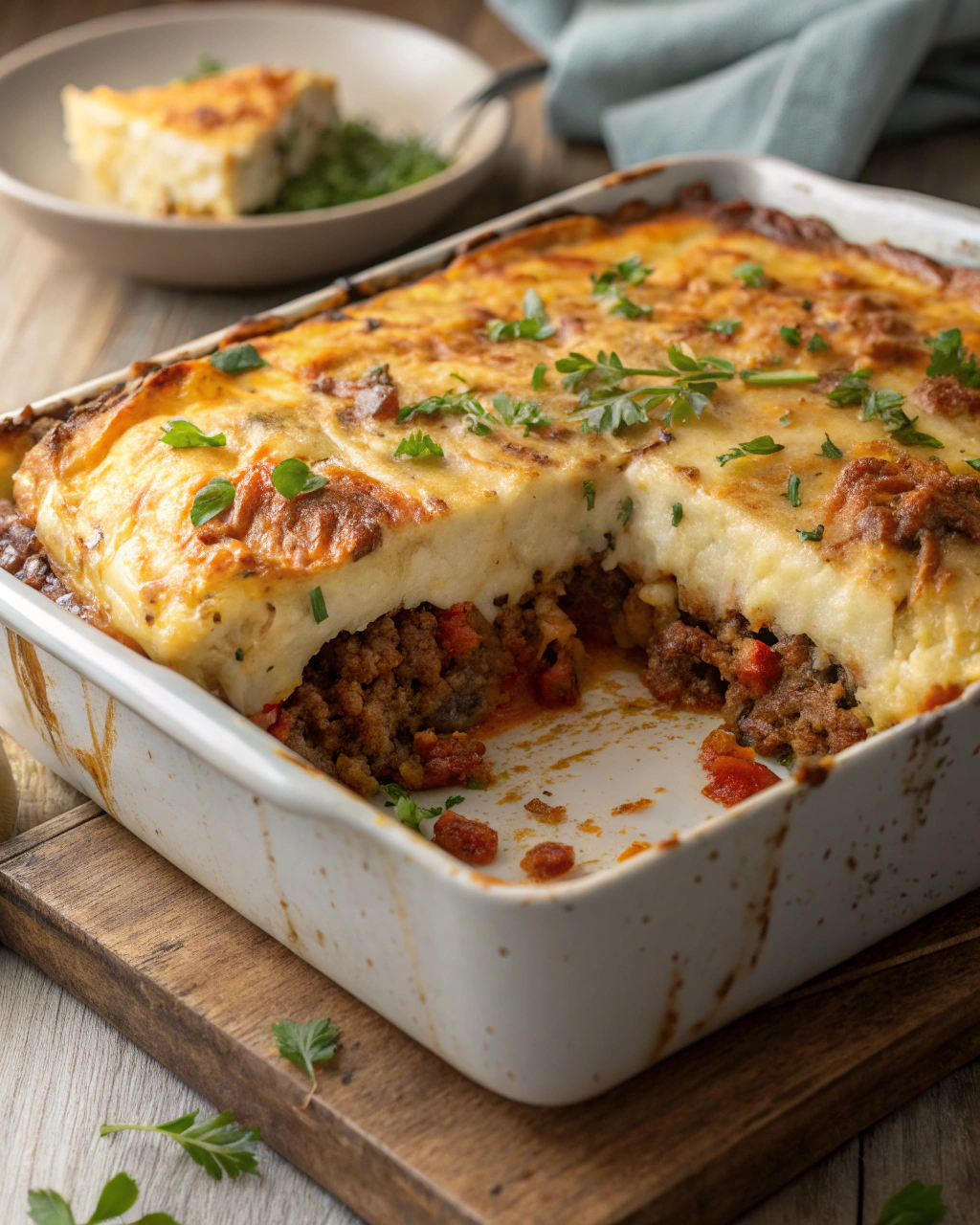 Ce hachis parmentier, avec sa croûte dorée et sa purée tendre, se sert tout simplement dans un plat rustique, entouré d’une salade verte légèrement vinaigrée pour apporter une touche de fraîcheur. Ses couleurs apportent un peu de chaleur à la table, invitant à ralentir et à se poser. On peut aussi l’accompagner d’un légume de saison, comme des haricots verts juste croquants, qui équilibrent bien le côté réconfortant du plat.