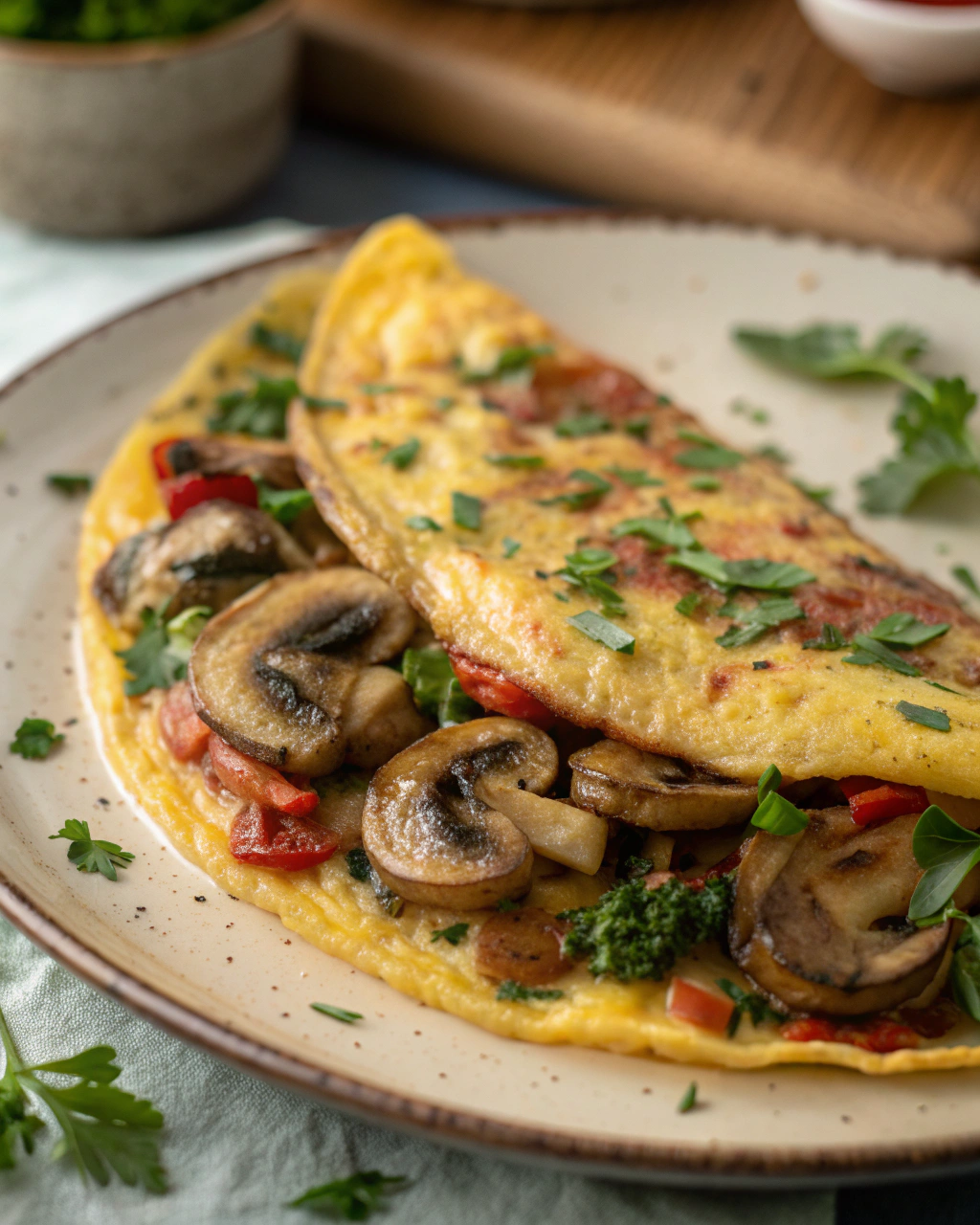 Cette omelette champignons–persil est une invitation douce à se régaler simplement, où chaque bouchée vous raconte un petit coin de cuisine lumineux.