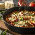 Ce plat m’évoque toujours les après-midis d’été, quand la lumière douce filtre à travers les rideaux et que la cuisine se remplit de l’odeur réconfortante des légumes mijotés au four. Le léger grésillement des légumes au contact du plat chaud, mêlé au parfum un peu sucré de la tomate et à la douceur fondante de la mozzarella, crée une atmosphère chaleureuse presque hypnotique. J’aime sentir ce mélange de fraîcheur et de douceur juste avant de plonger ma cuillère dans ce gratin encore tiède. La croûte dorée, légèrement croustillante, contraste délicieusement avec la chair tendre des courgettes qui se laisse découper sans résistance. C’est un plat simple, sans fussé, mais qui raconte toujours une histoire de moments partagés, de simplicité et de patience, entre la découpe paisible des légumes et l’attente légère pendant la cuisson.