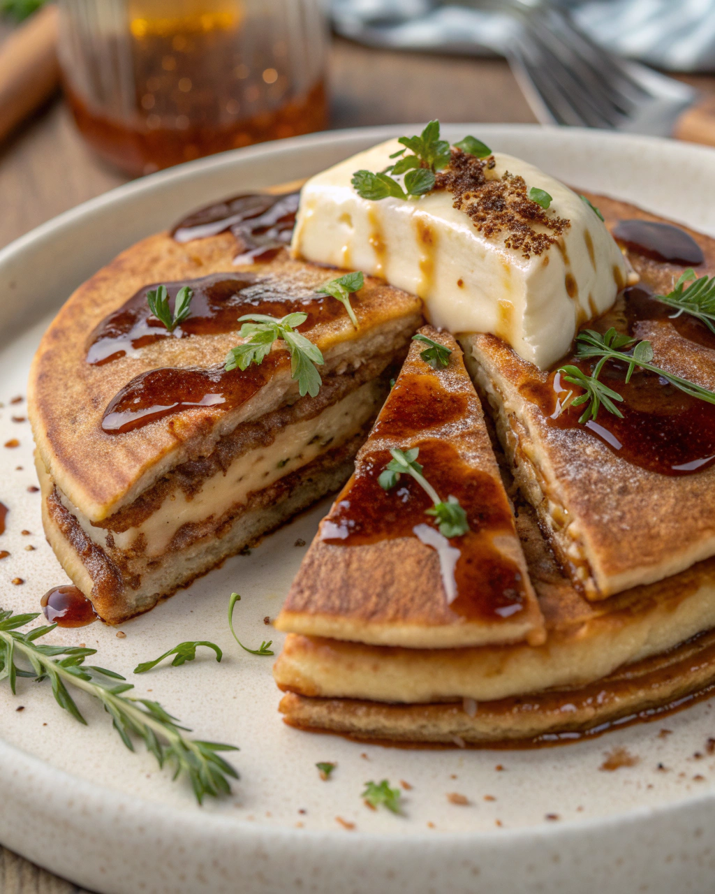 Servez les pancakes tièdes, empilés en plusieurs couches, accompagnés de miel, de sirop d’érable ou de fruits frais. Une cuillerée de yaourt nature ou une touche de crème fouettée peut également sublimer la dégustation.