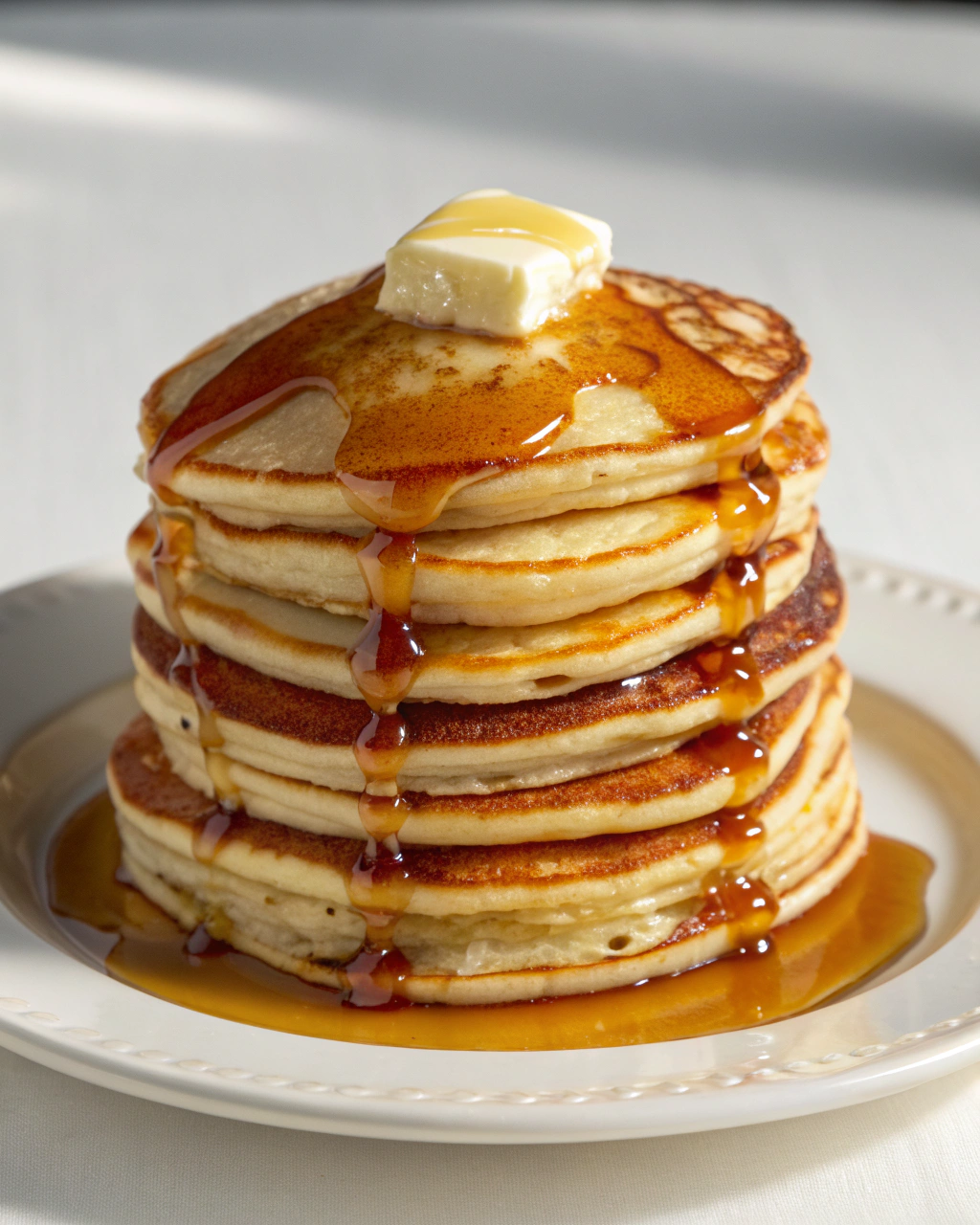 Servez vos pancakes empilés, nappés d’un filet de sirop d’érable ou de miel, accompagnés de fruits rouges frais qui apportent une touche d’acidité et de fraîcheur. Un peu de beurre qui fond doucement sur chaque tranche chaude ajoute toujours un peu de douceur. On installera ce petit déjeuner autour d’une table au matin clair, avec une tasse de thé ou un café fumant, pour un moment calme et simple. Le contraste entre la texture moelleuse des pancakes et leur croûte légèrement dorée se laisse apprécier sans hâte, au rythme d’une conversation légère ou de silences apaisés.