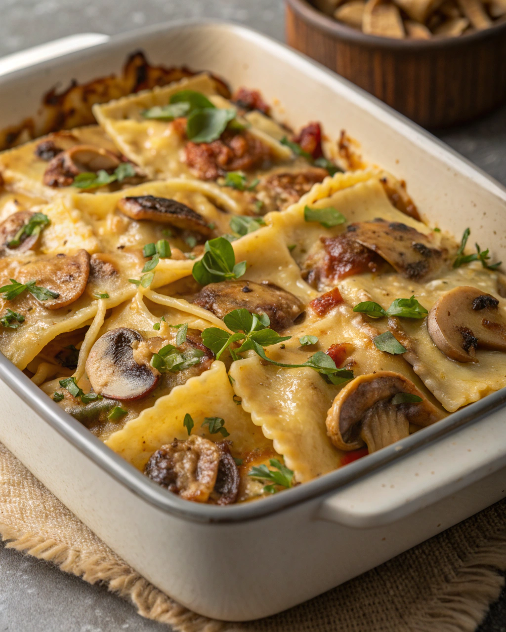 Servez ces pâtes dans des assiettes légèrement creuses, pour que la sauce s’étale avec douceur. Le mélange de beige et de brun des champignons contraste joliment avec le vert vif du persil fraîchement ciselé. Accompagnez ce plat d’un pain croustillant pour saucer, et d’un verre de vin blanc léger, idéal pour éclairer le côté crémeux et terreux des champignons. L’ambiance reste simple, chaleureuse, comme un repas entre amis où la convivialité compte plus que la sophistication.