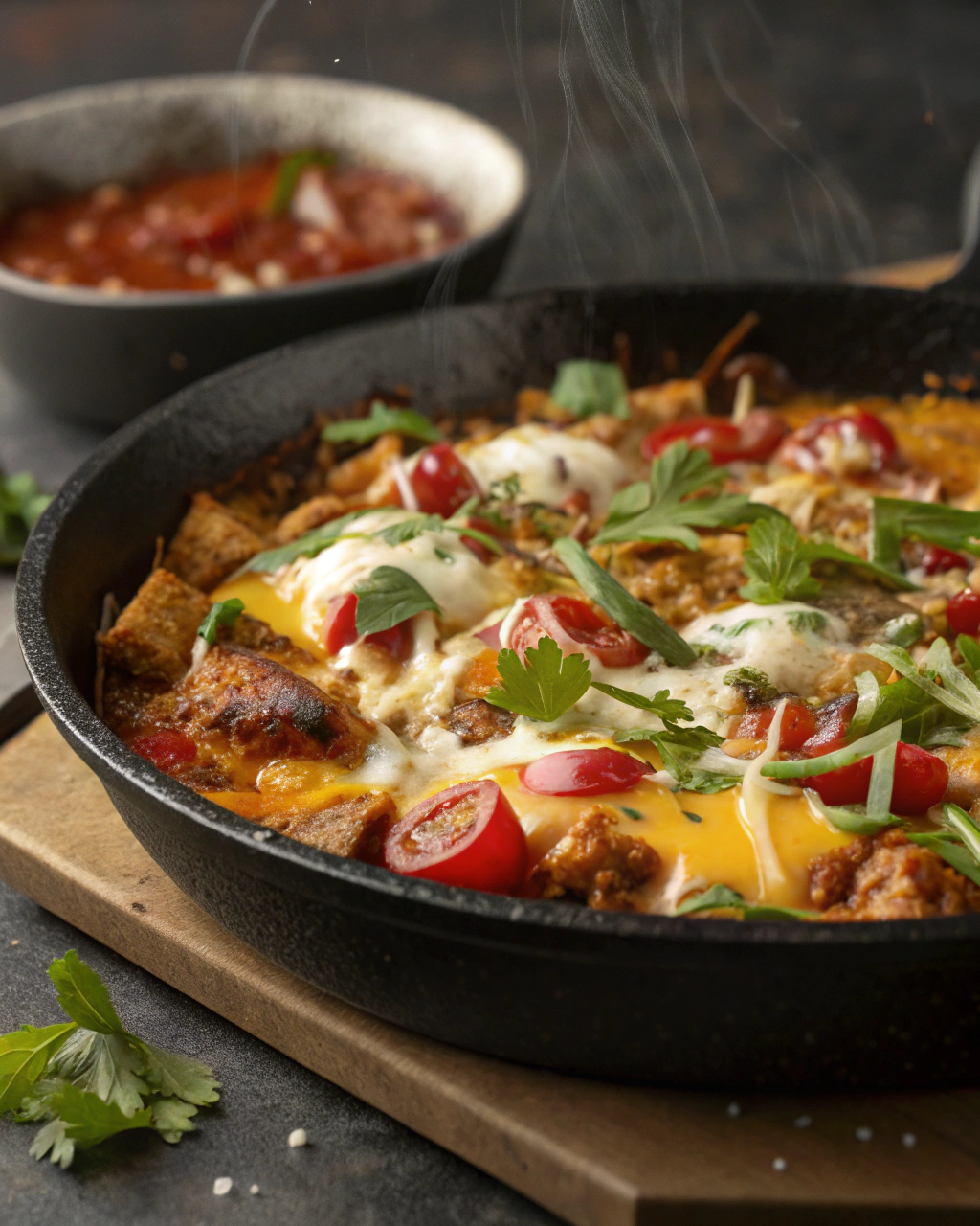 Servez cette tarte légèrement tiède, posée sur une assiette claire qui laisse respirer les couleurs mordorées et les éclats rouges des tomates. Un simple filet d’huile d’olive fraîche au moment de dresser et quelques feuilles de basilic juste cueillies suffisent pour sublimer l’ensemble. Elle accompagne joliment une salade verte croquante ou quelques légumes rôtis, et invite à une pause gourmande, calme et sincère autour d’une table ensoleillée.