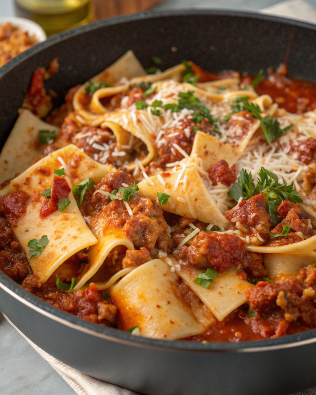 Je me souviens encore de ce moment où, en début de soirée, la cuisine s’est doucement remplie d’une odeur chaleureuse, presque réconfortante. Le doux crépitement de la viande qui mijote dans la poêle, mêlé au parfum des tomates fraîches et du thym, m’a fait plonger instantanément dans des souvenirs d’enfance. Il y avait cette saucière en porcelaine posée sur la table, prête à accueillir ces pâtes encore chaudes, toutes en rubans ondulés. La sauce épaississait lentement, ses arômes se dévoilant au fur et à mesure, promettant ce mariage parfait entre douceur et caractère. Ce plat, simple à première vue, est un équilibre subtil entre la texture fondante de la viande, la légère acidité des tomates et la chaleur légèrement épicée du poivre noir fraîchement moulu. Chaque cuillerée apporte ce même réconfort, presque comme un câlin en fin de journée.