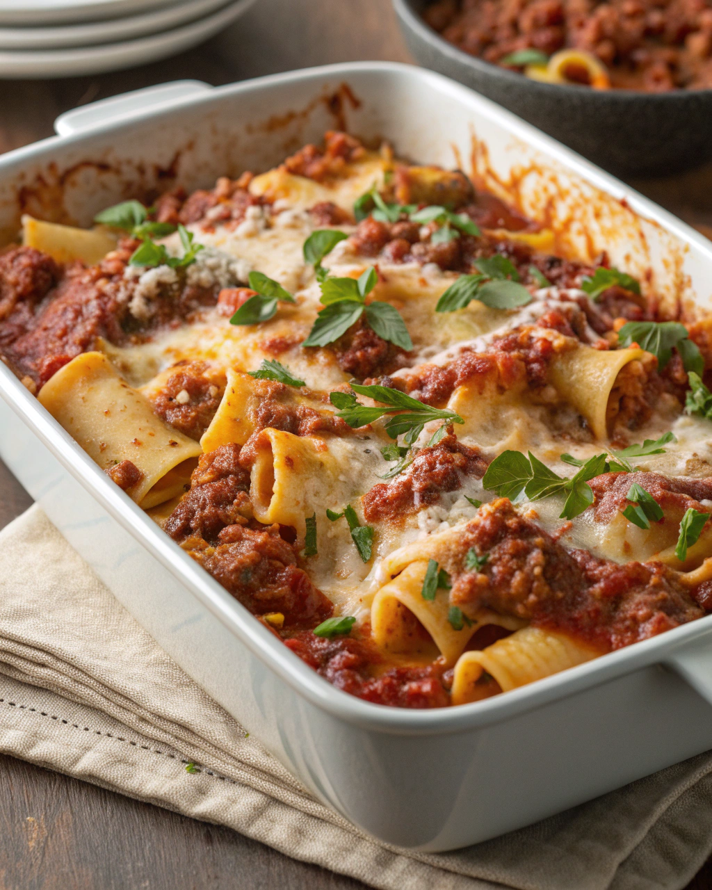 Servez ces pâtes bolognaises dans des assiettes larges, en laissant un peu de sauce visible pour le plaisir visuel. La couleur chaude des tomates contraste joliment avec la verdeur des herbes fraîches, apportant une fraîcheur bienvenue. Ce plat simple s’accompagne parfaitement d’une bonne salade verte croquante ou d’un pain de campagne pour saucer. Autour de la table, la lumière douce et un peu de musique entraînante créent une atmosphère conviviale, propice aux échanges et aux sourires partagés.
