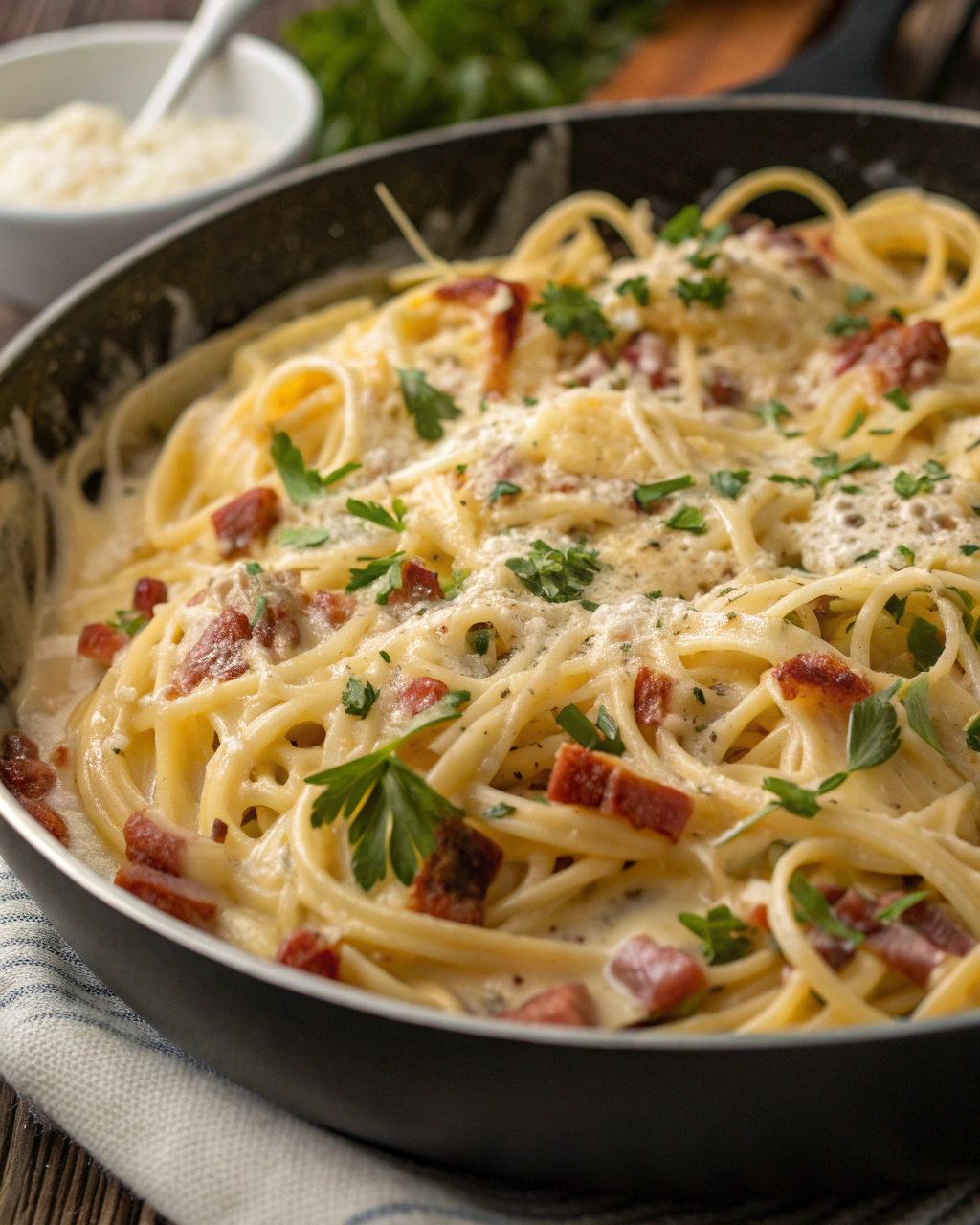 Je me souviens toujours de cette ambiance particulière quand je prépare des pâtes carbonara un soir de semaine. Le doux crépitement du lard qui commence à dorer dans la poêle, laissant s’échapper des arômes fumés qui s’infiltrent dans toute la maison. La texture croustillante des morceaux de pancetta contraste avec la douceur moelleuse de la sauce qui se forme doucement, presque comme une caresse au creux de la cuillère. Pendant que je remue sans cesse la préparation, la chaleur de la cuisine devient un cocon rassurant, un moment suspendu entre simplicité et gourmandise. Ces saveurs simples, sans prétention, qui une fois associées font toute la magie de la carbonara, me rappellent que la cuisine, parfois, ne demande que peu de temps pour offrir un vrai réconfort.