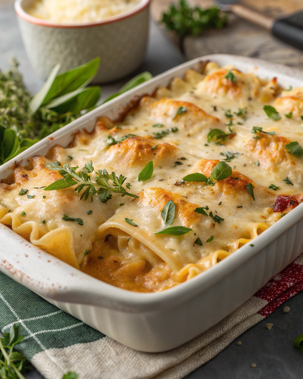 • La muscade complète merveilleusement le fromage, mais si tu n’apprécies pas, un peu de thym ou de basilic frais peut aussi offrir une note parfumée.