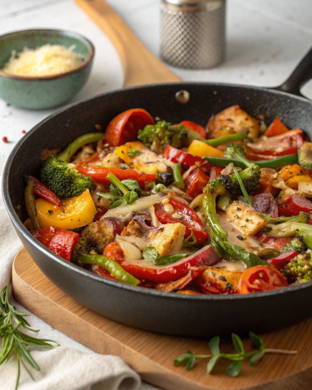 Je me souviens de ce moment simple dans ma cuisine, un matin où je voulais quelque chose de vif et léger, mais pas dénué de réconfort. Le sifflement de la poêle chauffée, le crépitement doux des légumes qui s’attendrissent doucement, et cette odeur mêlée de poivron juste saisi et d’ail tiède qui emplit la pièce… Tout ça me rappelle ces journées où le temps file mais où l’on veut quand même prendre soin de soi. La texture, un subtil équilibre entre le croquant encore présent et la douceur qui s’installe au fur et à mesure, donne à ce plat une sensation presque tactile dans la bouche. C’était simple et vrai, avec cette petite touche chaleureuse qui réchauffe sans alourdir, parfait pour un déjeuner sincère au milieu d’une journée bien remplie.