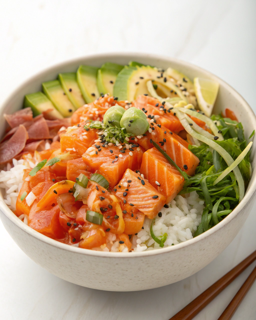 Je me souviens de ce dimanche après-midi où, en ouvrant mon frigo un peu trop chargé, j’ai croisé un morceau de saumon presque oublié, posant là comme une invitation à ne rien gaspiller. C’est en jouant avec ce reste que m’est venu l’idée d’un poke bowl simple, frais mais réconfortant à la fois. Pendant que le riz s’égouttait, j’entendais ce léger claquement de vinaigre de riz qui s’incorpore, rendant chaque grain brillant et légèrement parfumé. Puis, je coupais le saumon en cubes, sentant sa chair fondante sous le couteau, mêlée à l’arôme vif du citron et la douceur d’une sauce maison. Le mélange des textures – le croquant d’un radis finement tranché, la tendresse du poisson cru et la fraîcheur herbacée des jeunes pousses – m’a transporté. Ce plat, à la fois simple et savoureux, raconte beaucoup de petites attentions, celles qu’on met quand on cuisine pour soi, en prenant soin de ne pas laisser de place au gâchis.