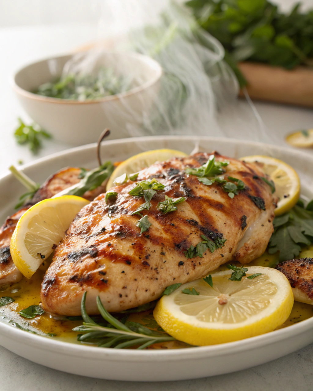 Je me souviens du jour où j’ai préparé ce poulet citron–herbes pour la première fois, un après-midi d’hiver où la lumière filtrée par la fenêtre jouait avec les ombres dans la cuisine. Le parfum frais du citron mêlé aux herbes qui embaumait la pièce, c’était un mélange à la fois vif et réconfortant. Dès que les filets de poulet ont commencé à grésiller doucement dans la poêle, ce léger crépitement m’a apporté une chaleur presque sourde, comme un petit feu secret. La peau qui devenait croustillante à souhait sous la spatule, en même temps que la chair restait tendre et juteuse, m’a donné cette sensation simple et profonde que la cuisine est bien plus qu’une préparation : c’est une expérience à savourer, presque à écouter. Toute cette simplicité m’a rappelé que quelques ingrédients choisis avec soin suffisent souvent à créer quelque chose de sincère et satisfaisant.