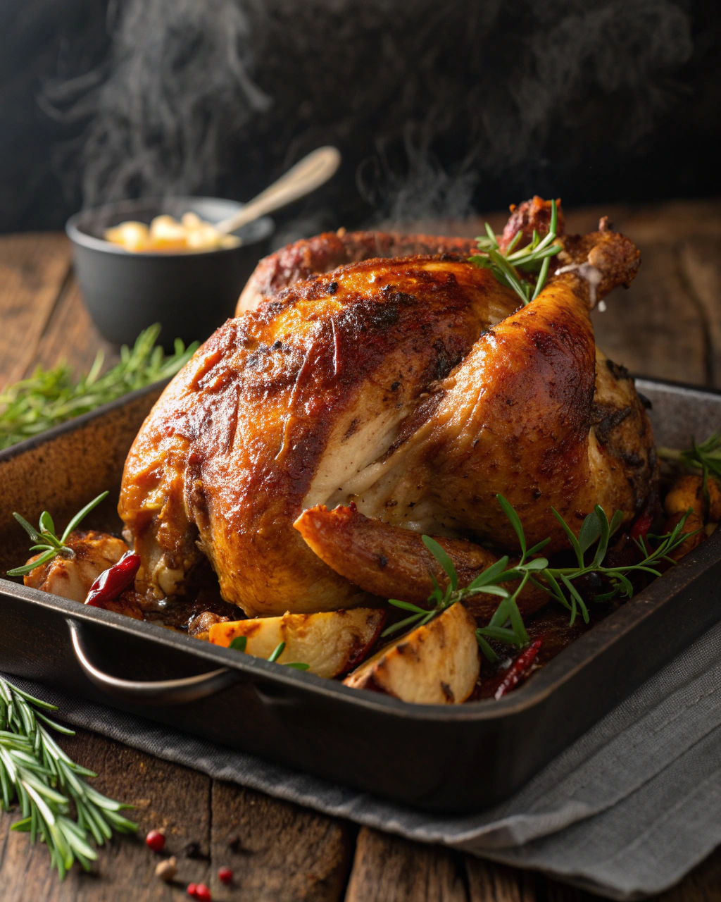 Cuisiner ce poulet rôti, c’est un peu comme revenir à l’essentiel, se réchauffer le cœur et le corps au rythme d’une simplicité savoureuse.