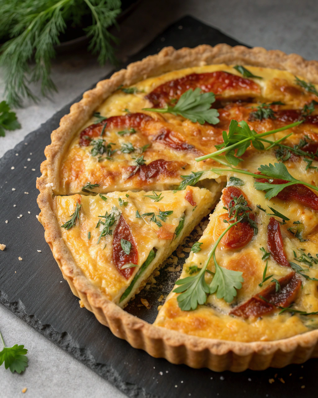 Ce souvenir me revient souvent : la quiche qui crépitait doucement dans le four, libérant ce parfum familier et réconfortant. La pâte qui croustille sous la dent, ce petit craquement juste avant de fondre en une texture tendre, voilà ce qui me ramène à cette recette. J’aime la façon dont le mélange d’œufs, de crème et de fromage gonfle un peu, doré à souhait, tandis que la cuisine se réchauffe doucement. C’est un plat que je prépare souvent à l’improviste, quand la lumière du jour baisse et que l’envie d’un dîner simple mais sincère se fait sentir. Rien de prétentieux, juste cette alliance chaleureuse entre le moelleux de la garniture et la croûte dorée qui raconte des histoires de repas partagés et de moments paisibles.