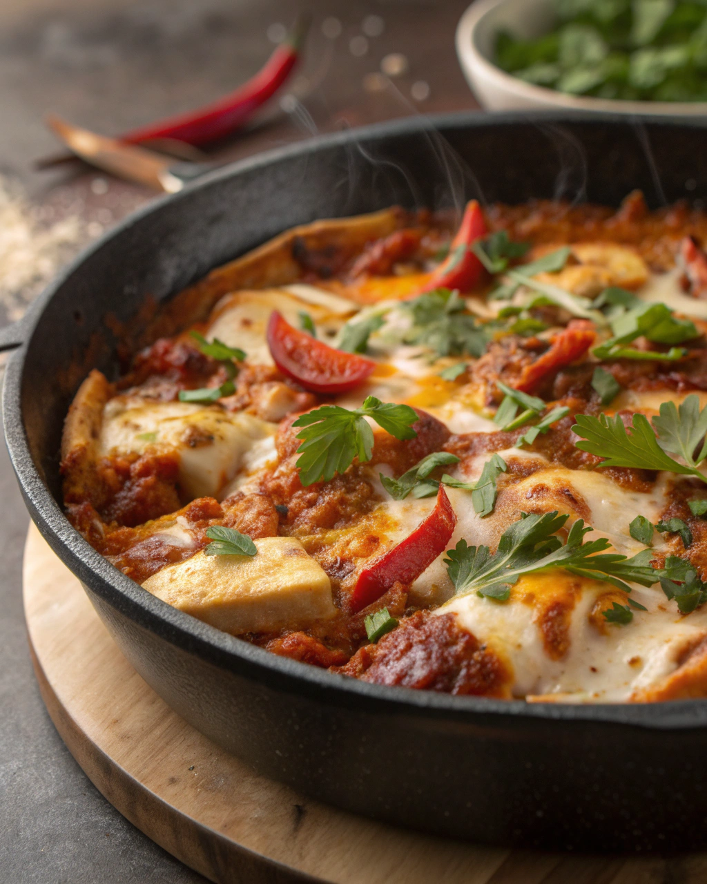 5. Enfournez pour 15 minutes jusqu’à ce que le dessus soit légèrement doré et que la sauce bouillonne doucement. Laissez reposer 5 minutes avant de servir, la texture se tiendra mieux et les saveurs auront eu le temps de se lier.
