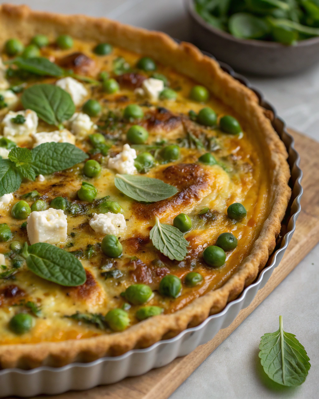Légère, parfumée et simple à préparer, cette quiche aux petits pois, feta et menthe est une option parfaite pour un repas équilibré, rafraîchissant et sans beurre. Une recette douce et gourmande à savourer en toute simplicité.
