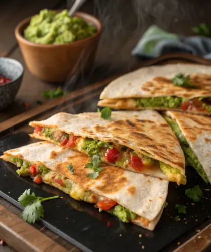 QUESADILLAS FACILES AU GUACAMOLE Ces quesadillas croustillantes et fondantes réunissent deux plaisirs simples : le fromage chaud qui s’étire et le guacamole maison crémeux et …