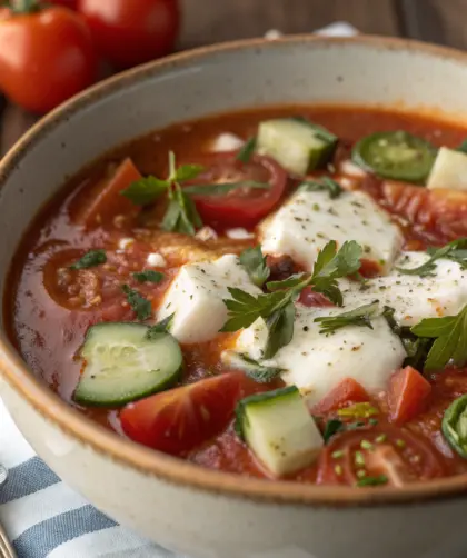 GASPACHO TOMATES, CONCOMBRE ET BREBIS Ce gaspacho mêle douceur, fraîcheur et onctuosité dans une recette simple à préparer et très agréable à déguster par temps …