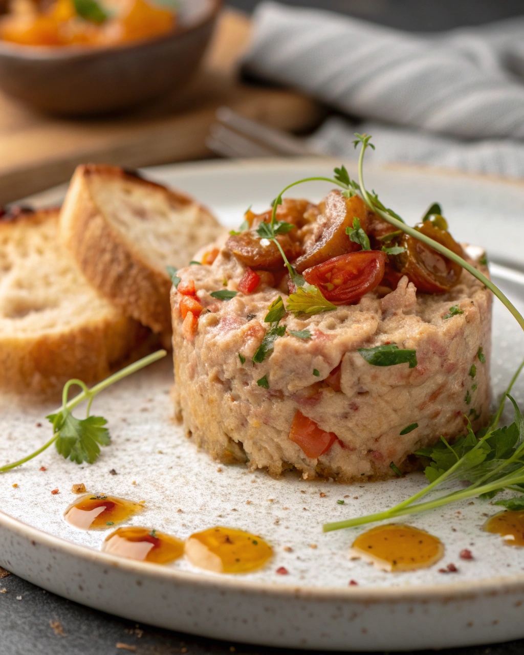 Je me souviens d’un après-midi doux, où j’avais envie de préparer quelque chose de simple, mais chargé de saveurs marines, pour un pique-nique improvisé au bord de l’eau. Le parfum iodé du thon en boîte s’est mêlé à la fraîcheur des herbes que je venais de cueillir sur le balcon. En mélangeant le thon avec un filet d’huile d’olive, la texture légèrement granuleuse qui se formait sous mes doigts m’a rappelé ces rillettes maison dégustées chez des amis au bord de la mer. Ce n’est pas une recette sophistiquée : elle invite plutôt à la convivialité, au partage de petites bouchées à la nappe à carreaux. J’aime cette sensation, celle d’un mélange simple qui trouve son équilibre dans un soupçon de citron, une pointe de moutarde et un peu de douceur crémeuse. Voilà un plat sans prétention, mais dans lequel chaque texture et parfum résonne avec authenticité.