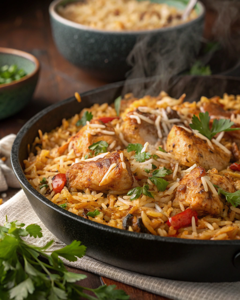 Il y a ce genre de plats où tout semble s’accorder sans effort, comme une conversation douce entre les ingrédients. Ce riz au poulet, je l’ai souvent préparé un dimanche après-midi, quand la lumière est un peu tamisée et que la cuisine embaume doucement les épices et le bouillon. J’aime écouter le léger frémissement de la poêle sur le feu, le crépitement subtil quand les morceaux de poulet commencent à dorer. Puis, la vapeur qui monte en teinte un petit nuage de parfum chaud et réconfortant, mélangé à la douceur du riz qui absorbe toute cette saveur. À chaque fournée, c’est cet équilibre, entre le fondant du poulet et le grain tendre du riz, qui me rappelle pourquoi la cuisine simple, c’est aussi un peu de douceur partagée.