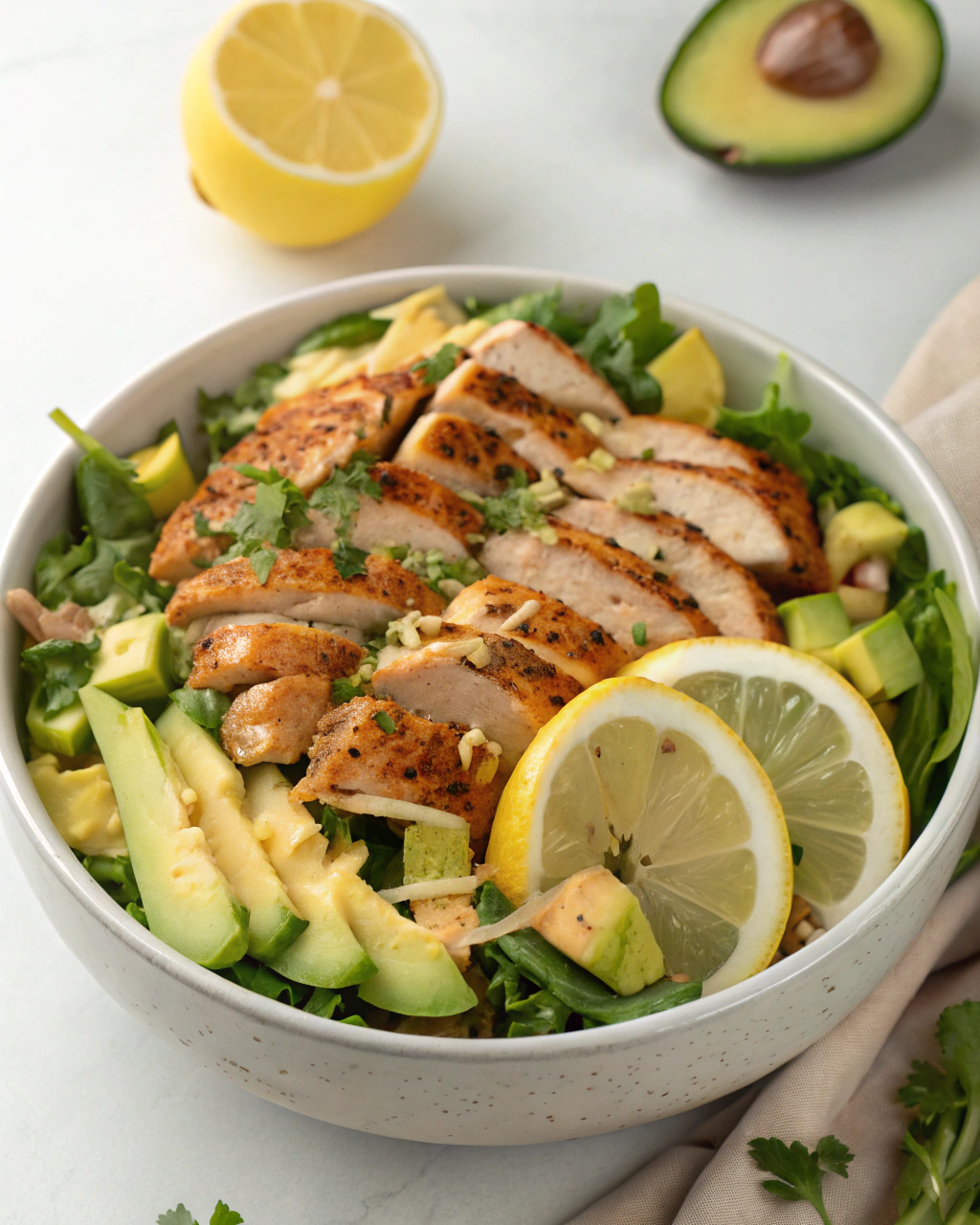 Je me souviens de cette fin d’après-midi où je me suis lancé dans la préparation d’une salade qui résonnait parfaitement avec la saison : ni trop lourde, ni trop simple. Le doux crépitement du poulet qui saisit doucement dans la poêle m’a tout de suite mis dans l’ambiance. La cuisine embaumait un mélange subtil entre l’huile chaude et ce léger parfum citronné qui s’en dégageait en pressant le citron frais. Pendant que le poulet dorait, j’épluchais un avocat mûr, presque parfait, et j’appréciais cette texture soyeuse sous mes doigts, contrastant avec la fraîcheur croquante de la salade. Cette alliance, entre le fondant de l’avocat, la tendresse du poulet, et la vivacité de l’acidité, crée une harmonie que j’aime retrouver, surtout quand le soleil commence à baisser, et que la lumière dorée caresse la table.