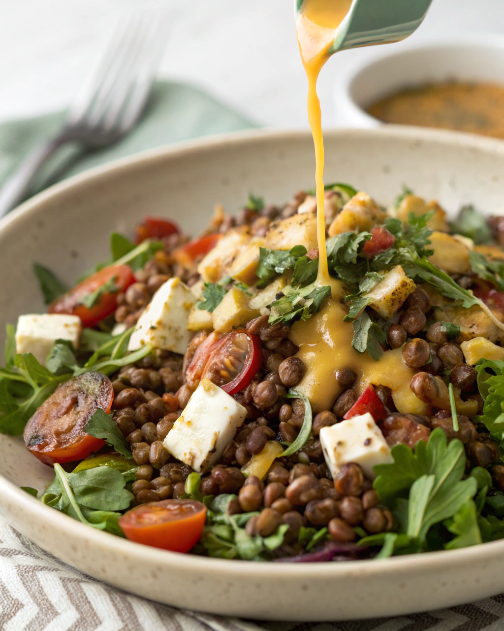 Je me souviens d’un après-midi d’automne, la cuisine embaumait légèrement le thym et la cuisson douce des lentilles dans leur eau frémissante. Le léger clapotis du liquide contre la casserole rythmait mes gestes tandis que je préparais cette salade simple, mais réconfortante. Ce plat ne demande pas de friture, ce qui laisse toute la place aux arômes naturels. La moutarde, à la fois piquante et ronde, s’est mêlée progressivement à l’huile d’olive, apportant cette petite note vive qui fait toute la différence. Ce qui me plaît, c’est la texture : les lentilles sont tendres mais gardent un peu de mâche, contrastant avec la fraîcheur croquante de l’oignon ou la douceur de la carotte râpée. Une salade qui n’a pas à rougir face aux plats plus sophistiqués, elle raconte une histoire à chaque cuillerée, simple et authentique.