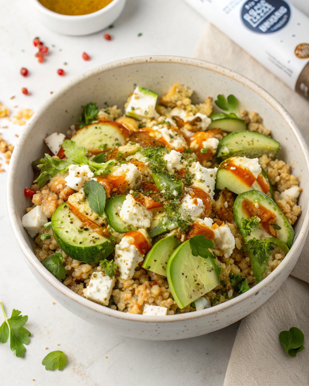 Je me souviens de ce jour lumineux où, en revenant d’un marché local, j’ai eu envie de préparer quelque chose de frais et léger. L’air était chargé de cette douceur typique des fins de printemps, avec une légère brise qui faisait bruisser les feuilles. En débutant cette salade, j’ai d’abord entendu le petit crépitement du quinoa en train de cuire doucement dans la casserole, un son rassurant, presque hypnotique. Pendant que les grains gonflaient, mêlant leur parfum quasi-noisette, j’ai coupé le concombre, sentant sous mes doigts sa fraîcheur croquante, presque glacée. Puis, en émiettant la feta, la salinité délicate s’est invitée à la fête, annonçant cette alliance pleine de relief. C’est un équilibre simple, qui joue sur les textures et les saveurs, parfait pour ces journées où la cuisine doit être à la fois rapide et sincère.