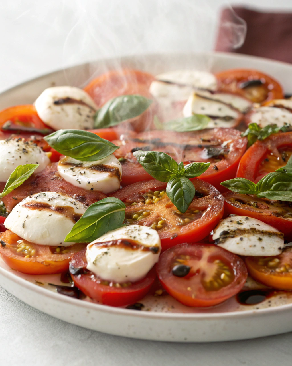 Je me souviens d’un après-midi d’été, la chaleur douce qui enveloppait la cuisine, la lumière tamisée filtrant à travers les rideaux. Le parfum des tomates mûries au soleil mêlé à celui du basilic frais embaumait l’air. J’épluchais délicatement la mozzarella, appréciant sa texture tendre et presque soyeuse sous mes doigts, avant de la couper en tranches épaisses. Puis, les tomates, croisées par un couteau, la chair juteuse s’échappant doucement, éclaboussant le plan de travail de jus légèrement acidulés. L’assemblage était un équilibre subtil entre la fraîcheur, la douceur et ce moelleux enveloppant qui fond doucement en bouche, suspendant le temps. Installer cette salade dans mon assiette, c’était presque comme inviter la douceur d’un été tranquille, sans artifice, simplement le plaisir simple des ingrédients qui ont beaucoup à raconter.