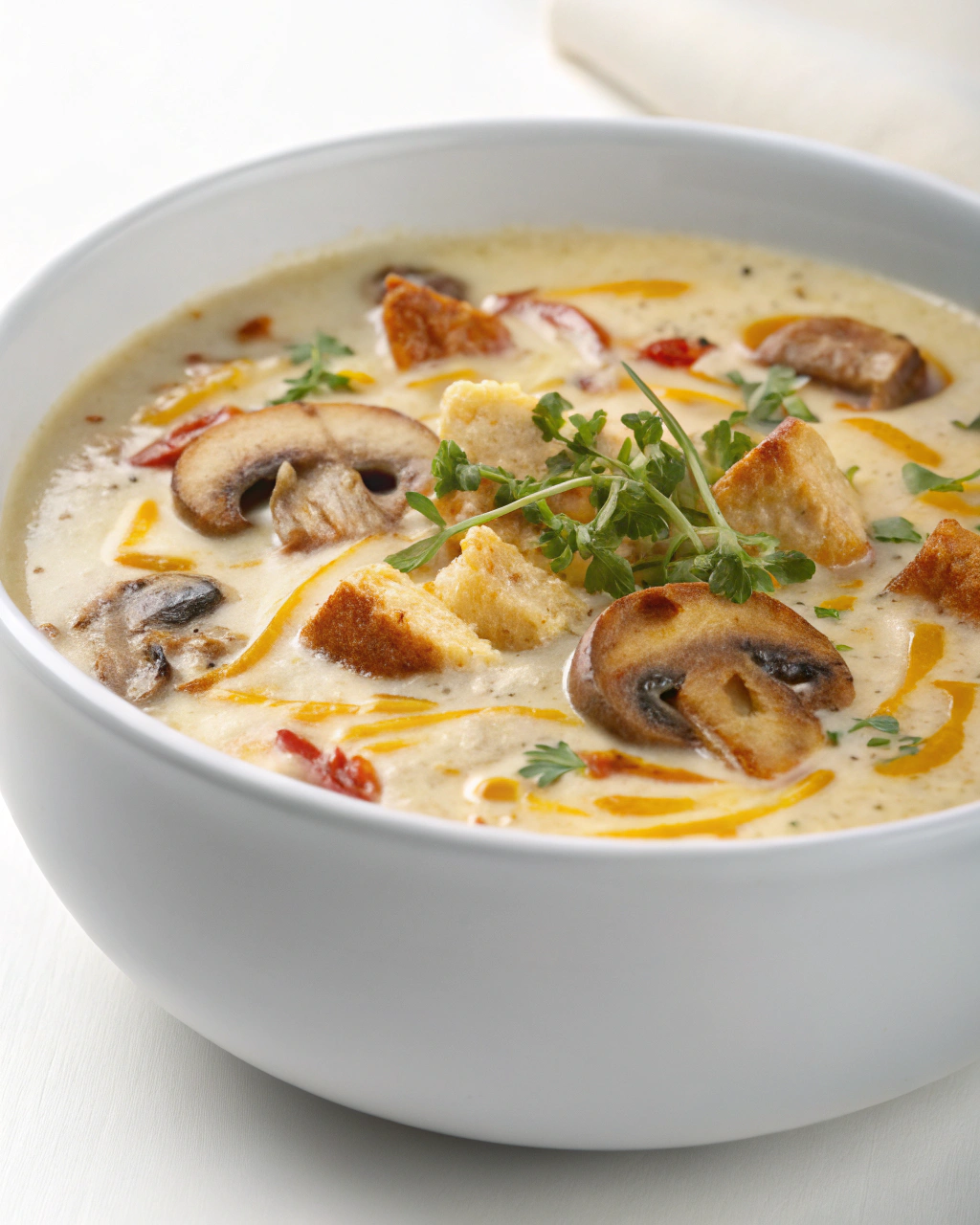 Je me souviens d’une matinée fraîche où, en ouvrant le placard, j’ai repensé à ces champignons frais dénichés la veille au marché. Leur odeur terreuse, presque humide, me rappelait les balades en forêt à l’automne. J’ai senti la nécessité d’une soupe légère, qui tiendrait chaud sans alourdir. Pendant que les champignons s’attendrissaient doucement dans la poêle, leur petit crépitement à feu doux a rythmé la cuisine. Le parfum s’est mêlé à celui de l’ail et du thym, laissant une promesse de douceur et de réconfort. En mixant le tout, la texture s’est révélée veloutée, mais avec une petite mâche gourmande, typique du champignon. Ce moment simple, préparant une soupe juste comme il faut, a cette magie discrète de réconfort bienfaisant, entre légèreté et saveurs authentiques.